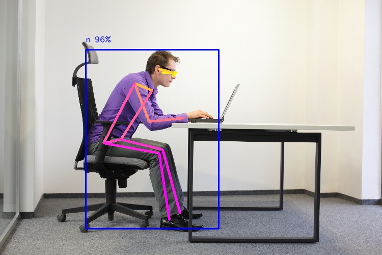 Real-time posture detection using Mediapipe pose estimation. Implemented alerts and visual feedback for posture correcion.
